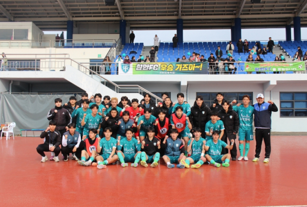 이날 함안군민축구단은 전반 42분 기장군민축구단에 선제골을 내주며 0-1로 전반을 마쳤다. 그러나 후반 들어 분위기를 바꿨다. 후반 15분 양유민 선수가 팀 창단 첫 골이자 동점골을 넣으며 승부를 원점으로 돌렸고, 후반 44분 하재현 선수가 페널티킥 결승골을 넣으며 극적인 역전승을 완성했다.