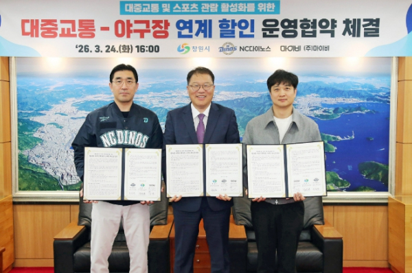 [진주뉴스 박민호 기자] 창원특례시와 NC 다이노스, ㈜마이비는 24일 창원시청에서 시내버스-야구장 연계 할인 서비스 제공을 위한 업무협약을 체결했다.