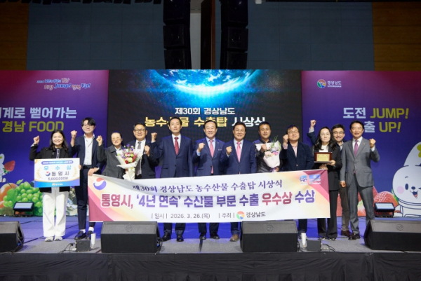 [진주뉴스 지대호 기자] 통영시는 지난 26일 창원컨벤션센터에서 개최된 ‘제30회 경상남도 농수산물 수출탑 시상식’에서 4년 연속으로 농수산식품 수출 우수 시‧군으로 선정되며, 수산물 분야 ‘우수상’을 수상하는 영예를 안았다.